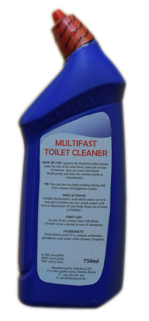 Multifast Toilet Cleaner is a powerful disinfectant specially formulated to tackle the toughest toilet stains, kill 99.9% of germs, and leave your toilet bowl sparkling clean with a refreshing scent. Its thick, clinging formula reaches under the rim and deep into the bowl to dissolve limescale, remove tough stains, and eliminate bad odours—fast.